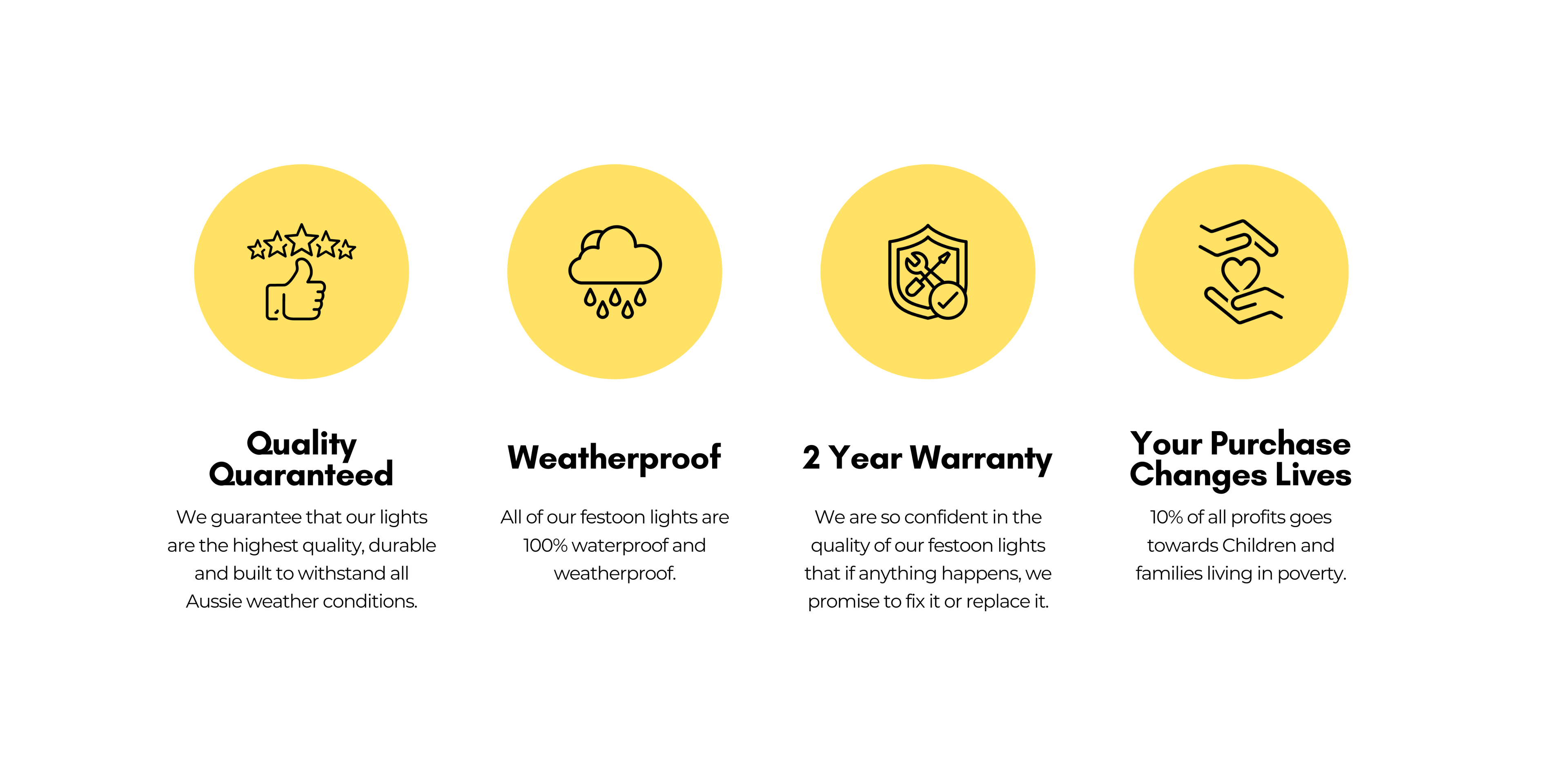 We understand that peace of mind is essential when making a purchase, which is why we proudly offer a 2-year Replacement Guarantee on our Festoons.